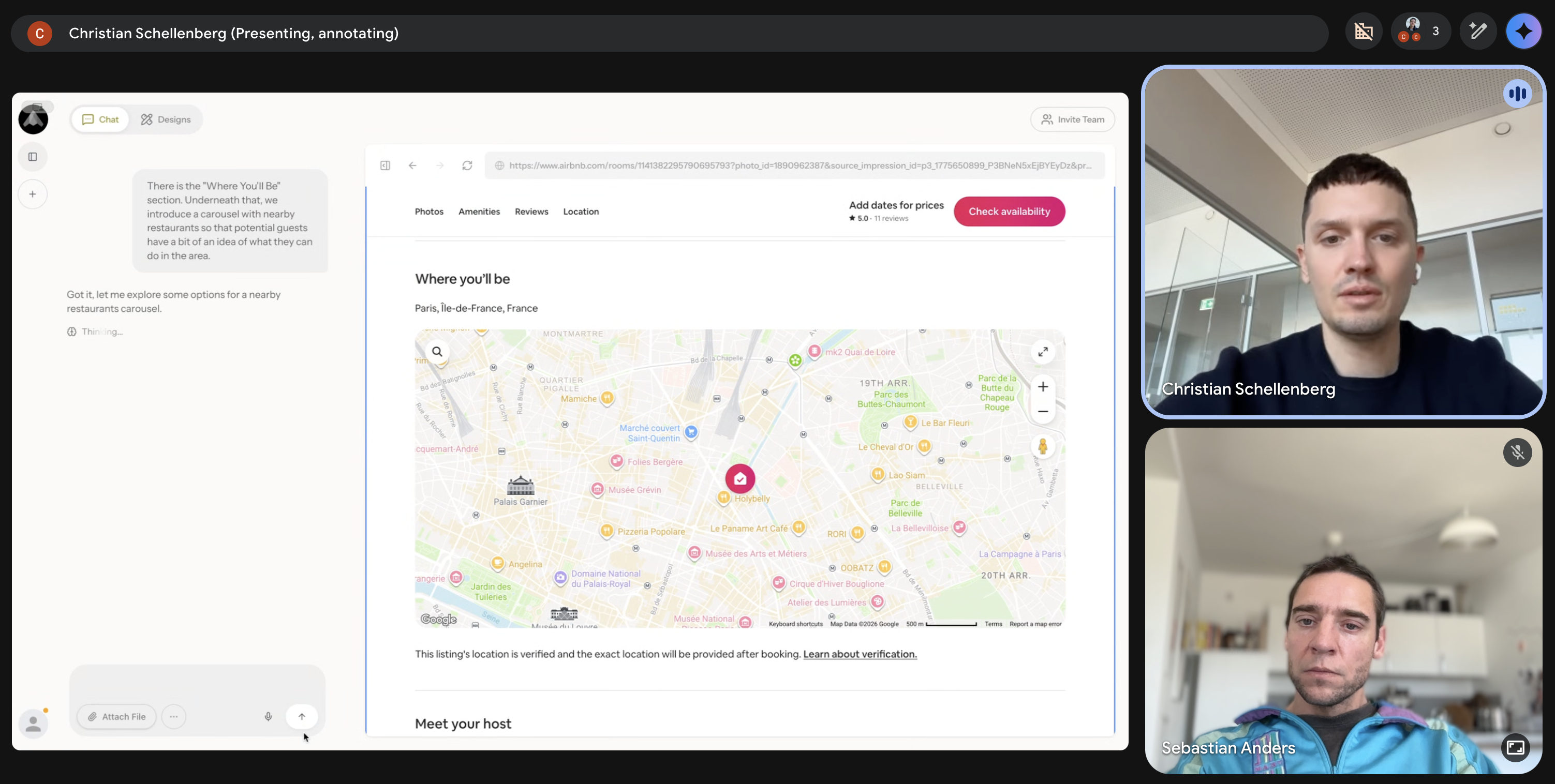 The example Christian demonstrated was impressive. In Contextual he navigated to Airbnb (just like you would do in a browser) and scrolled down in a listing detail, to add a new section after the Map section. He then described what he wanted to add and the LLM put out several different versions of it. Every version was slightly different but always in line with the Airbnb core design principles.